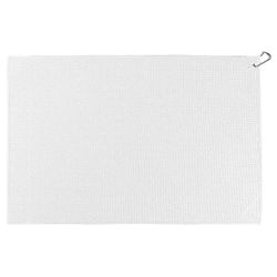 Upgrade your golf gear with this 16" x 24" waffle texture golf towel! Made from ultra-absorbent microfiber, this towel can hold up to 300% of its weight in water. Its premium quality ensures it won't scratch surfaces and is gentle enough to polish glasses. Non-abrasive and virtually lint-free, it's the perfect addition to your golfing essentials.